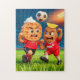A golden Belgian waffle with whipped cream challenges an Austrian schnitzel wearing a bright lemon slice helmet on a vibrant soccer field. Both food characters clash dynamically in expressive poses with clean vector‑like shading and soft 3D depth. Detailed grass and stadium lights create an energetic match atmosphere.