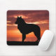 Ihre Lieblingszucht des Hundes silhouettiert durch einen herrlichen Sienaton Pazifik-Sonnenuntergang.