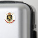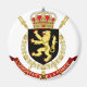 Weniger Wappen Belgiens. Das kleinere Wappen (wie es von der bundesstaatlichen belgischen Regierung, auf Passhüllen und den offiziellen Orten der Monarchie und der Regierung verwendet wird) besteht aus dem Schild, der Königskrone, den gekreuzten Skeppern, dem Halsband des Ordens des Leopold und dem Motto.