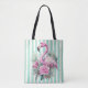 Beliebtes Blumenrosa Flamingo am Mintstreifen Tasche
