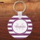 Beliebtes Muster für Lila Streifen und Monogramm Schlüsselanhänger