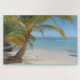 Belize Beach Szene Puzzle Puzzle. Palmen hängen über dem Karibischen Meer auf Southwater Caye, Belize. Im Hintergrund befindet sich das Riff aus Belize Image ©copyright Jo Rymell