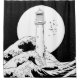 Eine Schwarz-Weiß-Kunstillustrierung des Leuchtturms von Bell Rock in Schottland. Große Wellen stürzen um den Boden des Leuchtturms.