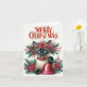 Belle carte de Noël de chat siamois avec un look vintage.