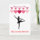 Une carte de voeux de Saint-Valentin comportant des graphiques de "mon beau danseur" avec des coeurs roses et un beau danseur sur l'avant.