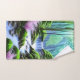 Ce graphique est une belle forêt luxuriante avec un élégant étang de cascade. Les fleurs bleu clair, les fleurs rose clair et lilas, les fougères, les arbres verts, la flore et la faune créent un paysage naturel époustouflant. Cette serviette ajoute de la couleur et de l'action à la salle de bain.