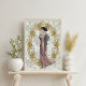 Schöne Dame aus der Belle Epoque in einer langen, rosa lila Kleidung mit goldenen Kränzen und Blumentapeten im Hintergrund