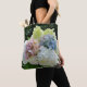 Sac de bouquet d'hydrangée coloré avec initiale monogramme. Un joli regroupement de fleurs d'hydrangée préférées en bleu clair, vert pâle, rose et blanc est la photo qui couvre les deux côtés de ce sac imprimé tout-en-haut qui vient en deux tailles. Ajoutez sa première initiale au côté supérieur gauche en script bleu pâle.