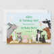 En bas de la ferme, tous les animaux sont super excités pour ton anniversaire de naissance ! Cette jolie invitation personnalisée pour la fête d'anniversaire de l'enfant comprend un âne, une oie, une poule et ses poussins, une chèvre de bébé, un porcelet, un lapin, deux agneaux, un collier frontalier, un chat noir et une vache et son veau.