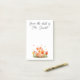 Coupable Renard d'automne Notes personnalisées Lorsque votre esprit déborde de tâches, gardez-le en même temps qu'un bloc de notes 3M Post-it® personnalisées. Joignez-vous à des notes urgentes, des listes ou une douce note à quelqu'un de spécial comme "N'oubliez pas le lait !" Chaque pavé 4"x6" est livré avec 50 notes collantes imprimées en couleur avec vos graphiques, texte ou photos. Ces Post-it® seront sur votre bureau, autant qu'ils soient personnel et créatifs.