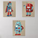 Ajoutez une touche de science-fiction classique à n'importe quel mur avec cet ensemble de 3 affiches présentant de jolies illustrations rétro de robots. Les illustrations dans les tons rouge et bleu sont posées sur un arrière - plan de couleur bronzée.