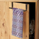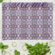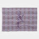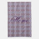 Serviette à thé à motifs fleuris blanc. Le texte d'accueil peut être personnalisé ou le texte peut être supprimé. Les couleurs sont violettes, blanches, bleues et un brin de rouge.