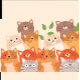 Une paire de tongs avec un design fantaisiste de différents chats. Les chats, dans les tons orange, gris et crème, sont aménagés de façon ludique, mettant en valeur leurs expressions et leurs traits distincts, l'arrière - plan est un beige doux.