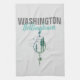 Die moderne Wortkunst besticht durch Washington im bedrückten, grauen Schriftart mit Bellingham in einem modernen Aqua-Script-Schriftart mit geometrischen Baumlogo-Stilelementen