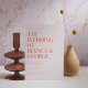 Die Belmont-Designkarte zeigt die Namen der Ehepaare in einem großen, fetten Schriftart und schafft so ein visuelles Herzstück, das Bände spricht. Wie Sie oben und unten sehen, werden die wesentlichen Details der Feier in einem kleinen, klassischen Serif-Schriftart anmutig präsentiert. Die Rückseite ist eine Leinwand für ein weiteres wunderschönes Foto des Ehepaares, das einen Einblick in ihre gemeinsame Reise ermöglicht. Eine personalisierte Botschaft, die sorgfältig von den Paaren erstellt wurde, fügt eine warme und intime Touch hinzu und lädt Liebende ein, sich an der Feier ihrer Gewerkschaft zu beteiligen.