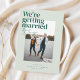 Die Belmont rett-the-date-Karte zeigt ein vertikales Foto, das das Wesen der Liebe des Paares erfasst und so ein visuelles, Bände sprechendes Kernstück schafft. In der links oberen Ecke stiehlt die kühne Erklärung "Wir heiraten" das Rampenlicht. Unmittelbar darunter sind die Namen des Paares in handgeschriebenem Kalligraphie-Stil verfasst, der eine Touch von persönlichem Charme und Eleganz schafft. Wenn man in die untere Mitte blickt, werden die wesentlichen Details der Feier anmutig in einem kleinen, klassischen Serif-Schriftart präsentiert. Datum, Uhrzeit und Veranstaltungsort werden nahtlos zusammengeführt und versprechen einen Tag voller Freude und gepflegter Momente. Die Rückseite ist eine Leinwand für ein weiteres wunderschönes Foto des Ehepaares, das einen Einblick in ihre gemeinsame Reise ermöglicht. Eine personalisierte Botschaft, die sorgfältig von den Paaren erstellt wurde, fügt eine warme und intime Touch hinzu und lädt Liebende ein, sich an der Feier ihrer Gewerkschaft zu beteiligen.