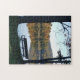 Herbstaussicht in Alberta, Michigan bei L'Anse mit schönen Herbstbäumen, die auf dem Wasser reflektieren, mit einer Bank für den besten Ausblick, den man sich vorstellen kann.