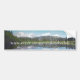 Eine farbenfrohe digitale Abbildung des Rainiers, der umliegenden Landschaft und des blauen Himmels, die in das stille Wasser eines Sees reflektieren. Die Adresse der Website des Ladens wird in einem leicht lesbaren weißen Text über den Autoaufkleber gedruckt. Image Copyright ©2019 Kimberly J Tilley.