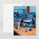 Benny Blue Bunny - Abendessen Essen Essen Hamburger trinken Spaß, traditionelle skurrile Illustration von Christine Karron