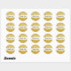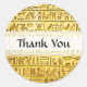 Ein Set von gelben, runden "Danke" Aufklebern mit antiken Hieroglyphen, die auf Stein graviert sind. Die Worte "Danke" sind anpassbar!
