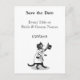 Eine Save the Date angefertigte Postkarte mit Vintagen Buchstaben und einem schwarz-weißen Stift und Tinte, die von einer Katze mit Brille und einem Mantel gezeichnet wird, der ihren oberen Hut kippt. Klicken Sie auf Anpassen, um Schriftart zu ändern, Größe zu ändern, Ihr eigenes Foto hochzuladen und vieles mehr, sogar Ihr Design für später retten.