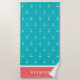 Strandtuch im nautischen Stil mit einem weißen Ankermuster mit einer bearbeitbaren Hintergrundfarbe, klicken Sie auf die Schaltfläche Anpassen für den Zugriff. Um die türkisfarbene Farbe zu ändern, wählen Sie die Hintergrundfarbe aus und ändern die Farbe. Um die Korallenfarbe zu ändern, wählen Sie die rechteckige Ebene aus und ändern Sie deren Farbe. Personalisieren Sie es, indem Sie den Platzhalter-Text durch Ihren eigenen Text ersetzen. Für weitere Optionen, wie zum Beispiel den Schriftart zu ändern und ihn zu vergrößern oder zu verändern, klicken Sie auf den Button "Anpassen". *Bitte beachten Sie, dass das Zazzle-Wasserzeichen, das in der Zoomvorschau angezeigt wird, NICHT auf dem gedruckten Endprodukt erscheint. © Rosewood and Citrus