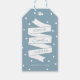 Stilvolle Gastgeschenk Hochzeit Tag mit einem Farbband und einem weißen Farbmuster mit bearbeitbarer Hintergrundfarbe (um es von staubblau zu der gewünschten Farbe zu ändern, klicken Sie auf die Schaltfläche Anpassen). Personalisieren Sie es, indem Sie den Platzhalter-Text durch Ihre eigenen Informationen ersetzen. Für weitere Optionen, wie zum Beispiel den Schriftart zu ändern und ihn zu vergrößern oder zu verändern, klicken Sie auf den Button "Anpassen". *Bitte beachten Sie, dass das Zazzle-Wasserzeichen, das in der Zoomvorschau angezeigt wird, NICHT auf dem gedruckten Endprodukt erscheint. © Rosewood and Citrus