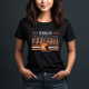 Custom Football Name and Player Number T - Shirt for Mama - Shown in Black Design for football moms and fans bietet eine benutzerdefinierte Schrift mit Helm, Fußball nähen Details, Streifen und benutzerdefinierten Text, der mit einem Mannschaftsnamen und Spielernummer personalisiert werden kann. Die Farben Orange und Weiß können verändert werden.