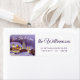 Einzigartig, trendig, hübsch und originell im Dezember Wintersaison Aufkleber. Niedliche englische Landhäuser in einer schneebedeckten Winterlandschaft. Mit "Liebe Joy & Cheer Text in eleganten Kalligraphiebriefen und Raum, um mit dem gewünschten Familiennamen, Rücksendeadresse und Saison Gruß anpassen oder personalisieren.