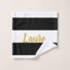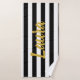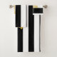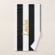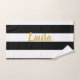Dieses schwarz-weiße Badetuch-Set hat waagerechte Streifen. Personalisieren Sie den Text in Imitate Gold Skript.