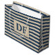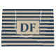 Benutzerdefinierte Initial Blau/Vanilla Stripes Große Geschenktüte