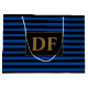 Benutzerdefinierte Initials Blau/Schwarze Streifen Große Geschenktüte