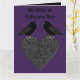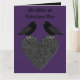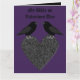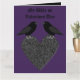 Diese phantastische Karte zeigt ein Paar gotischer schwarzer Ravens, die oben auf einem schwarzen Herz stehen und liebevoll aufeinander starren. Dieses Design ist perfekt für Hochzeiten, Jubiläen und Valentinstag. Es ist auch großartig, um dem besonderen Gott in deinem Leben zu zeigen, wie sehr du sie Liebe.