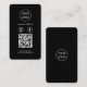 Custom Cards modern, Social Media QR Code Black Ein einfaches, feines, benutzerdefiniertes schwarzes Business Scan, um mit uns auf Instagram und Facebook QR Code Visitenkarten in einem modernen minimalistischen Stil zu verbinden. Die vielseitige Vorlage kann leicht mit Ihrem Firmenlogo, Grafik oder Foto, QR-Code, benutzerdefinierten Text und Social Media Icons (Facebook & Instagram) aktualisiert werden. Die Icons lassen sich einfach durch eigene ersetzen, um ein wirklich berufliches Design für Ihr eigenes Unternehmen zu schaffen! Sie können z.B. andere Social Media-Konten wie Twitter, Linkedin, WhatsApp, YouTube und vieles mehr einschließen!