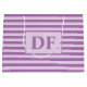 Diese "Custom Initials Lila Stripes Large Gift Bag" verfügt über lila Streifen und kann mit den Initialen des Empfängers personalisiert werden. Machen Sie Ihre Geschenke noch unvergesslicher mit dieser stilvollen und anpassbaren Geschenktasche.