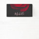 Makro-Foto einer schönen rote Rose auf schwarzem Hintergrund mit Vintagem Graueffekt mit individualisierbarem Monogramm.