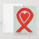 Der Postkartenkunstdruck zeigt das Bild eines Farbbandbildes mit rotem Herz-Bewusstsein. Fügen Sie Ihre eigenen optionalen Wörter oder Nachrichten auf der Postkarte für personalisierte Farbbandkarten hinzu! Sie können den Text auch für einen nur als Postkarte gedruckten Artikel entfernen. Eine rote Bewusstseinsbandfarbe bedeutet Unterstützung für AIDS / HIV, Herz-/Kreislauferkrankungen, Schlaganfall, Alkohol-Substanz und Drogenmissbrauch, Blutkrebs, MADD (Mütter gegen Betrunkenes Fahren), DARE (Medikamentenmissbrauchsresistenz), Hämophilie (Projekt Red Flag), Desaster Relief, Marfan Syndrom, Epidermolysis Bullosa (EB) Hypertonie (Bluthochdruck) und Liebe um nur einige zu nennen. Die roten Herz-Bewusstsein-Band-Malerkarten können mit personalisierten Botschaften versehen werden, um große Sensibilisierungskampagnen für Spendenfiguren, Sensibilisierungsgeschenke oder andere Sonderveranstaltungen zu erstellen. Geben Sie diese Kunst als Sensibilisierungsband Geschenk für jeden Anlass.