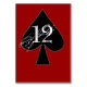 Kartendesign Hochzeitsempfangskarte in roter Farbe mit einem großen, schwarzen Farbsymbol. Personalisieren Sie den weißen extravaganten Grunge-Text für jeden Tisch am Empfang. Ideal für Hochzeiten mit Alice im Wunderland oder Glücksspiel.