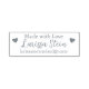Ein nettes, individuelles Produkt mit dem Begriff "Made with Liebe", um Ihre handgefertigten Produkte mit Liebe zu personalisieren... Ihr eigener Name oder Ihre Marke in einem eleganten Script Schriftart Stil, und eine Zeile, um E-Mail oder andere zusätzliche Informationen über Ihr Unternehmen ... zwei kleine Lieben Herzen auf der Seite.