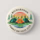 Einzigartige Camping-Knöpfe für die Wiedersehen. Das Design besticht durch einen Vintagen Sonnenuntergang mit drei Camping-Zelten in einem Wald in der Nähe eines Sees. Die Vorlage macht es einfach, mit dem Familiennamen und einem Jahr zu personalisieren. Das Design ist beige.