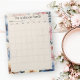 Bleiben Sie elegant organisiert mit diesem personalisierten, monatlichen Blumenkalender-Notizblock im Hochformat. Mit zarten Wasserfarben-Blüten in Rosenholz, Creme und gedämpftem Blau entlang der Ränder ist dieses vertikale Design ideal für schmalere Schreibtischflächen, Küchentresen oder Familienkommandozentralen.