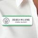 Dieses individuell anpassbare grüne Namensschild ist eine berufliche und vielseitige Wahl für jeden Arbeitsplatz. Es bietet ein übersichtliches Layout mit Platz für Ihren Namen, Titel und Ihr Firmenlogo.