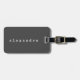 Dieses stilvolle Gepäckanhänger zeichnet sich durch ein minimalistisches Design Ihres Namens in einem Retro-SchreibmaschinenSchriftart in Weiß auf einem zeitgenössischen schwarzen Hintergrund aus. Tolle Geschenkidee!