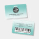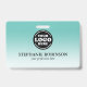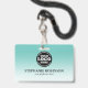 Ein modernes aquamarines Business Design Abzeichen, das Ihr Firmenlogo und Ihren Mitarbeiternamen unterstreicht. Option, zusätzliche Firmeninformationen und einen Scan-Strichcode auf der Rückseite einzufügen, falls erforderlich. Dieses Design wäre perfekt für jedes Unternehmen oder Unternehmen und der Hintergrund kann in jeder Farbe verändert werden.