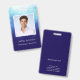 Passen Sie dieses einzigartige moderne Mitarbeiterausweis-Abzeichen einfach mit einem Namen, Beruf und Foto an. Dieses dunkelblaue Namensschild mit klarer einfacher weißer Schrift kann für Ihre Zwecke bearbeitet werden. Fügen Sie Ihren Namen und Titel sowie ein Foto auf der Vorderseite hinzu. Auf der Rückseite ist Platz für weiteren benutzerdefinierten Text. Sie können eine ID-Nummer, die Firmenadresse, Telefonnummer, E-Mail-Adresse oder Website-Adresse hinzufügen. Ich habe dieses einzigartige Design mit weißem und blauem Nebelnebel erstellt. Es sieht auf dem dunkelblauen Hintergrund cool aus. Dies wäre ein großartiges Mitarbeiter-Foto-ID-Abzeichen für Fachleute aus dem Wissenschafts- und Technologiebereich, IT, Webdesigner, Luft- und Raumfahrt oder den Spielwarenladen.