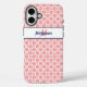 Dieses Gehäuse hat ein spielerisches, rot-rosa kariertes Muster mit abwechselnden Blume und rosa Kisten. Das Monogramm Initial ist in passendem Rosa, das durch das navy-blaue Skript und die Akzente Set abnimmt.
