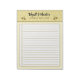 Dieser einfache Honey Do List Notizblock hilft Paaren, alle ihre Haushaltsaufgaben und Aufgaben mit größerer Leichtigkeit zu verwalten. Er ist ein gedachtes Geschenk für verschiedene Anlässe wie einen Jahrestag, Einweihungsfeier, Verlobungsfeier oder Hochzeit. Um das Design zu personalisieren, fügen Sie einfach den Namen oder die Namen einer Person oder eines Paares oben hinzu.