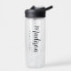 Klarere Wasserflasche mit Vorname in einem fett gedruckten, schwarzen Skript mit Nachname in moderner Schrift. Die einfache, personalisierte Wasserflasche kann auch zur Anzeige Ihres Unternehmens- oder Firmennamens verwendet werden.