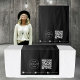 Eine benutzerdefinierte schwarz-weiße Tapisserie, die an ein Tischrunner-Banner für Ihren Pop-Up-Shop angepasst werden kann. Passen Sie das Tischrunner-Banner mit Ihrem Firmenlogo, Geschäftstext, QR-Code, Social Media-Icons und Handles an und erstellen Sie Ihren eigenen Tischrunner für Ihre Kunsthandwerk- und Händlerveranstaltungen. Ideal für Messen, Pop-Up Shops, Expos etc.