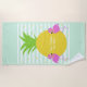 Benutzerdefinierter Text Ananas-Flamingos Strandtuch